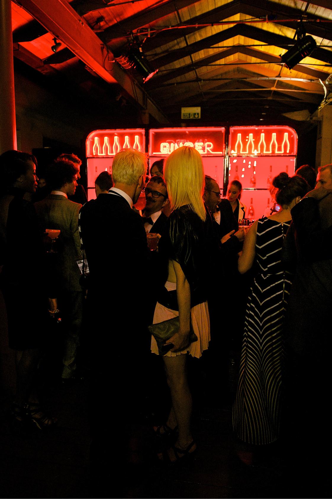The black and red color scheme embodies the brand’s visual identity, creating a moody atmosphere that invites guests to explore. Frisky neon lights switch between “Remy” and “Ginger,” the key ingredients of the cocktail, playfully calling mixologists to action and enhancing the bar’s lively spirit.