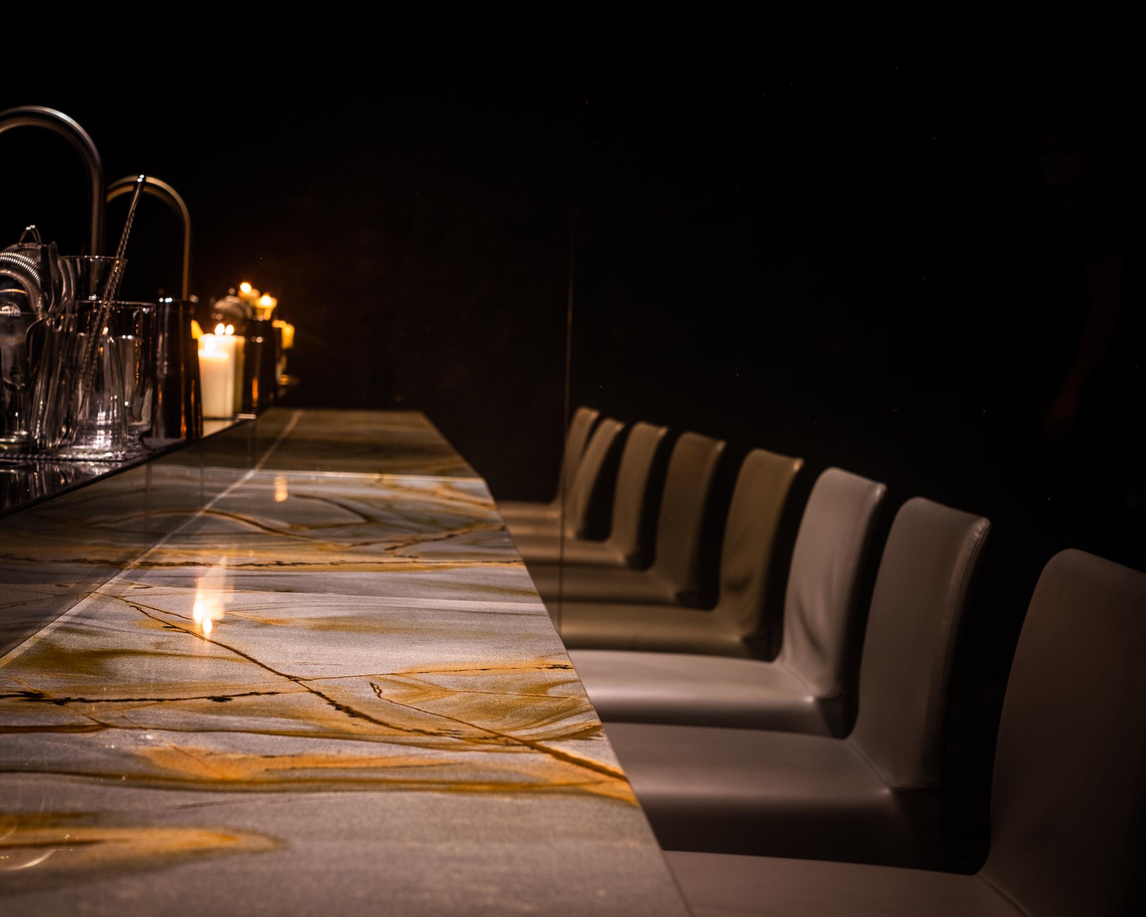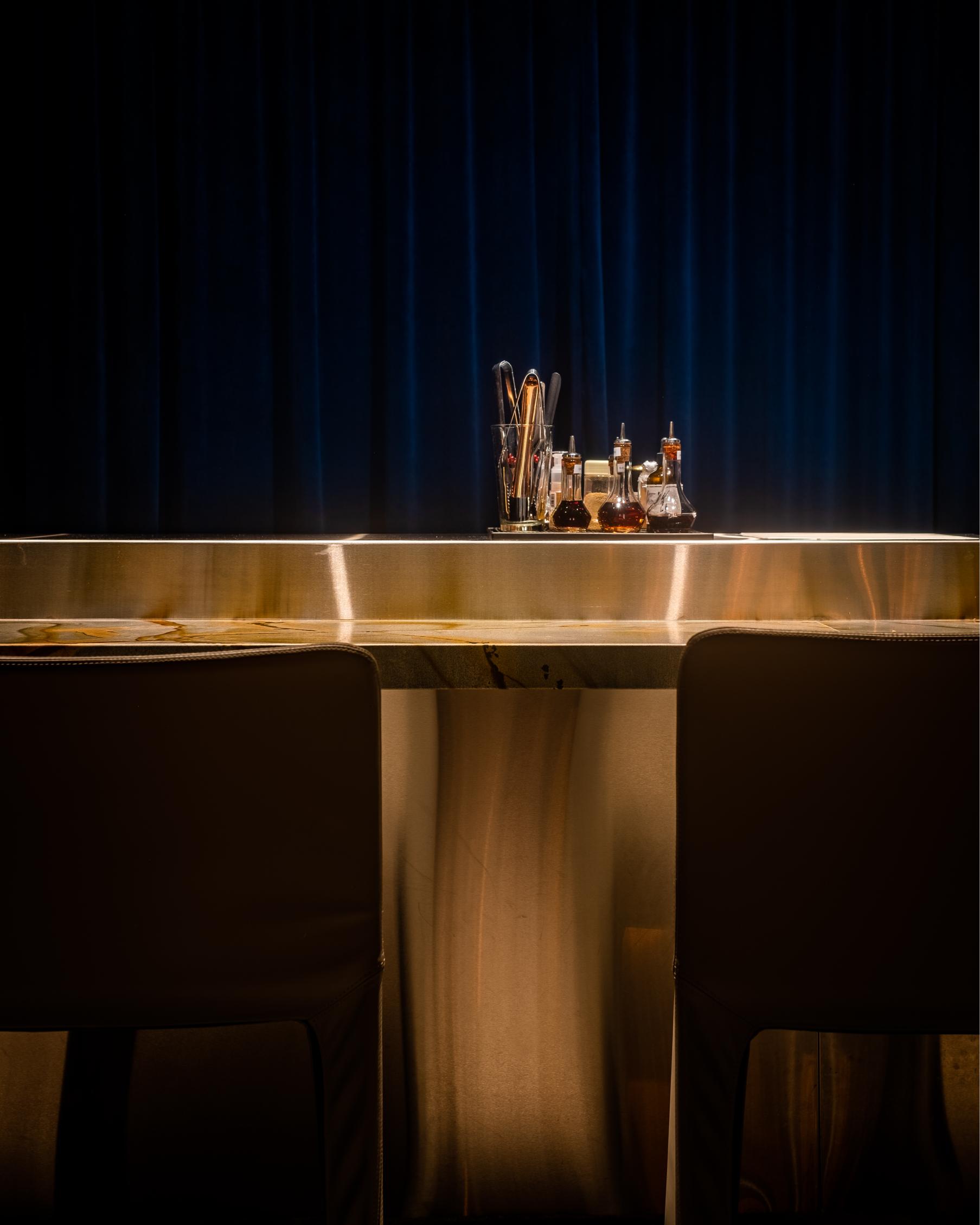 The new tasting room for Orientalist Spirits is a 60 sqm sanctuary shrouded in mystery, designed exclusively for curated, by-appointment tastings of the brand’s three signature spirits. This intimate retreat embodies oriental elegance, creating a comfortable cocoon where time seems to stand still.